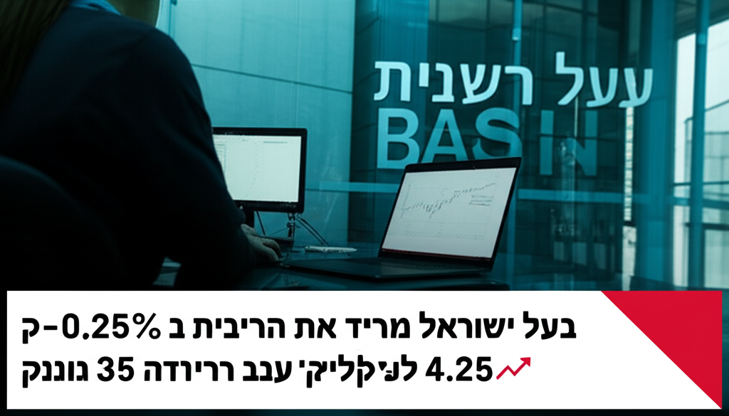 בנק ישראל הפחית היום את הריבית ב-0.25% לרמה של 4.25% בעקבות נתוני אינפלציה נמוכים וצמיחה מתונה במשק. ההודעה הובילה לעליות