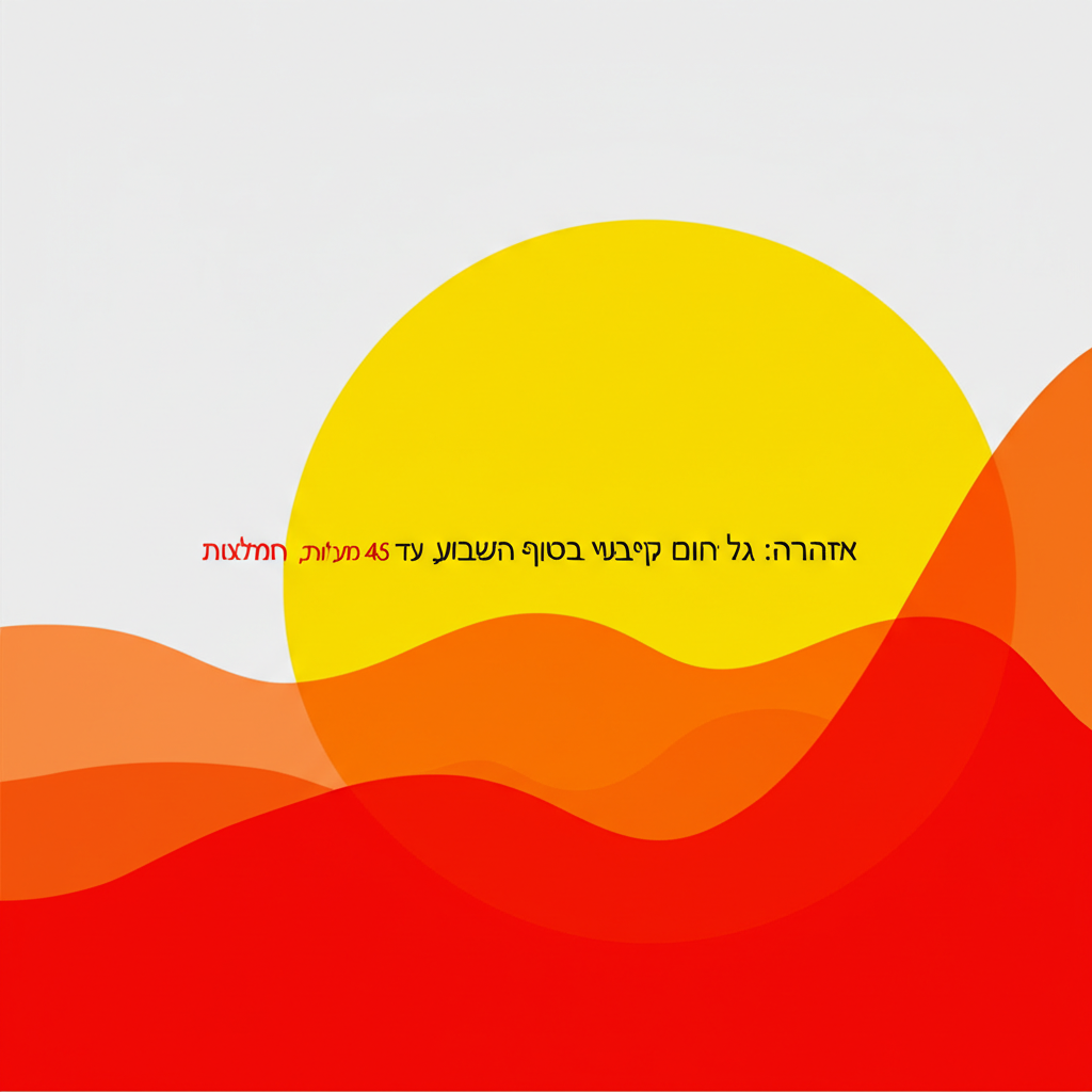 גל חום קיצוני צפוי לפקוד את ישראל בסוף השבוע, עם טמפרטורות שיא העלולות להגיע ל-45 מעלות באזורים מסוימים. השירות המטאורולוגי