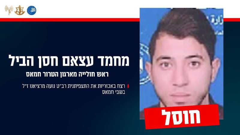 בהודעה משותפת, דובר צה״ל ודוברות שב״כ מסרו כי צה"ל ושב"כ חיסלו היום (יום ד') במרחב שאטי את המחבל מחמד עצאם